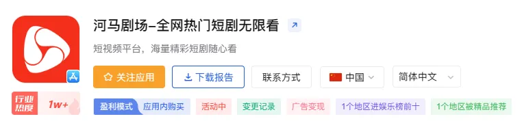 河马剧场APP是如何在短时间内提升排名及下载量的呢?接下来我们从ASO优化的角度来分析下。