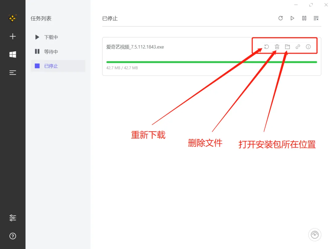 下载完成后可以在“已停止”板块查看下载的源文件。