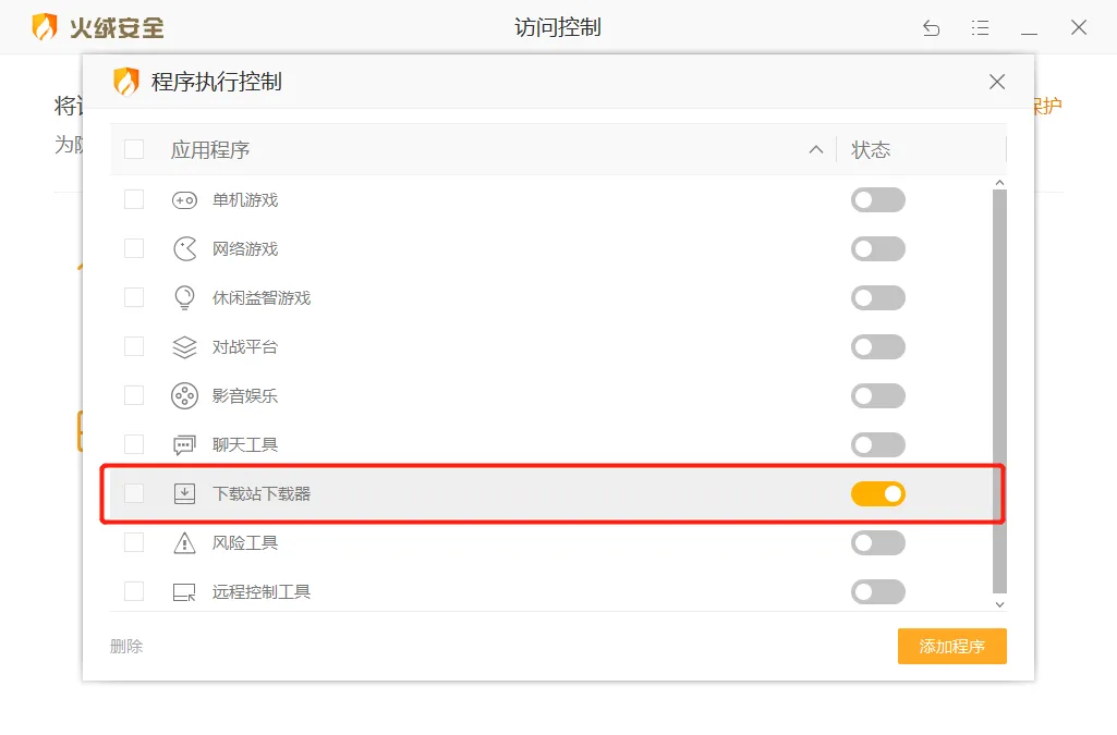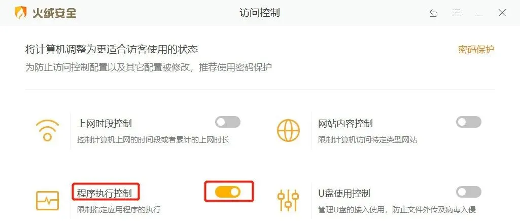 开启方法:访问控制 – 程序执行控制 – 点击开启按钮。
