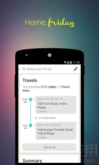 这是一个非常小众冷门的日记类APP,它的最大特色就是自动记录你手机的行为,你当天用手机拍的照片、短信、邮件、电话记录和当天的走路线。很可惜这个APP也需要安装Google框架才行。