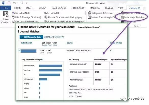 现在,EndNote可以帮你解决这个难题!EndNote X9会结合你的文章引用和Web of Science中的引文数据,帮你锁定适合投稿的期刊名单,不让错误的投稿成为你学术之路上的绊脚石!