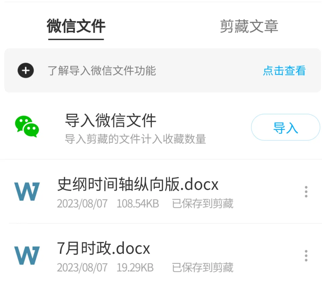 2️⃣支持微信小程序:可以导入微信文件,平时的学习资料单独导入分类,就不用担心会过期了。