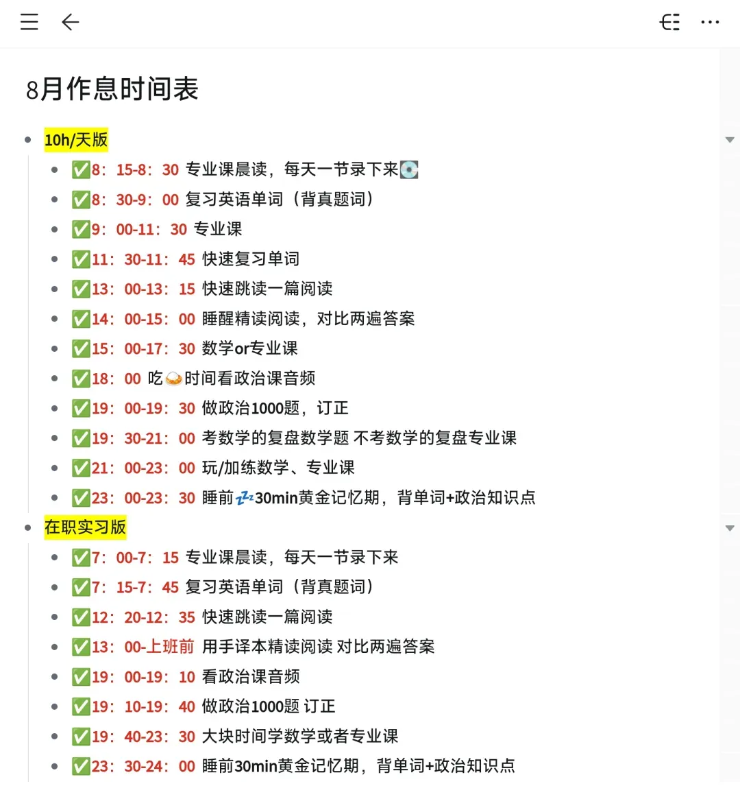 1️⃣整理专业课框架:我分享的作息时间表就是用它做的,有大纲模式和思维导图模式,可以自由切换,十分适合用来整理专业课框架。