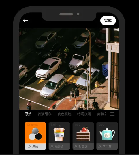 拍什么类型的食物直接选择对应的滤镜,然后就可以开始各种角度的咔咔拍照。