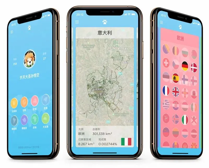 这个APP记录了你走过的世界上的每一个角落,如果你能坚持使用这个APP记录你的脚步,那么一段时间之后就能在地图上看到你所走过的地方。