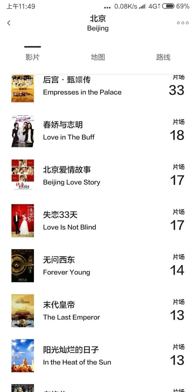 可以从喜欢的电影入手找,也可以直接从城市入手,或者直接查看附近的地方。