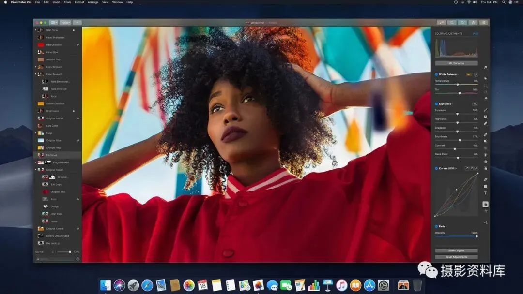 相对于Adobe Photoshop来说Pixelmator pro是一款轻量级修图软件,干净整洁的界面易于操作,界面清爽,布局灵活,熟悉 Photoshop 的人可迅速上手。软件建立在一些开源和 Mac OS X 图形技术之上,可调用 Mac 图形加速。使用起来在界面交互和流畅感上均优于 Photoshop,且与 Mac 自带程序整合不错。