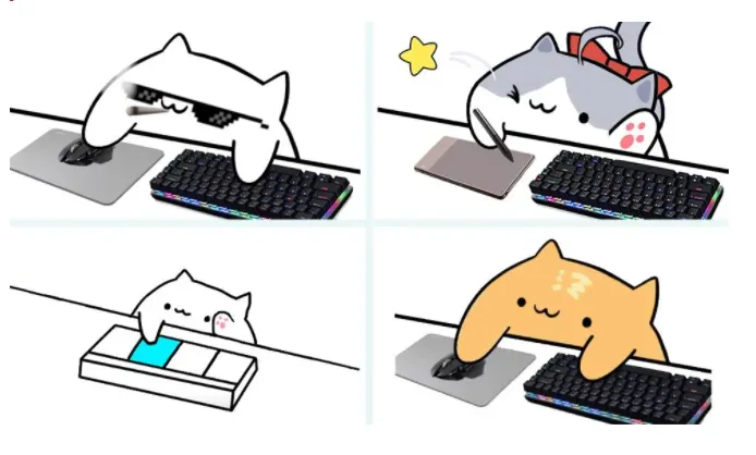 如果你平常喜欢看游戏直播,那么一定对下面这只小猫咪不陌生,它的名字叫BongoCat,会在你使用电脑的过程中模仿你的鼠标键盘等操作,虽然用处不大,但还挺有趣的