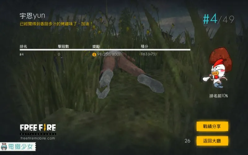 BTW 我觉得临场感也蛮有的…我从第二场吃鸡手游开始都把声音关掉…因为脚步声还有枪声真的都太逼真了啦我快吓疯呜呜呜(有够逊…