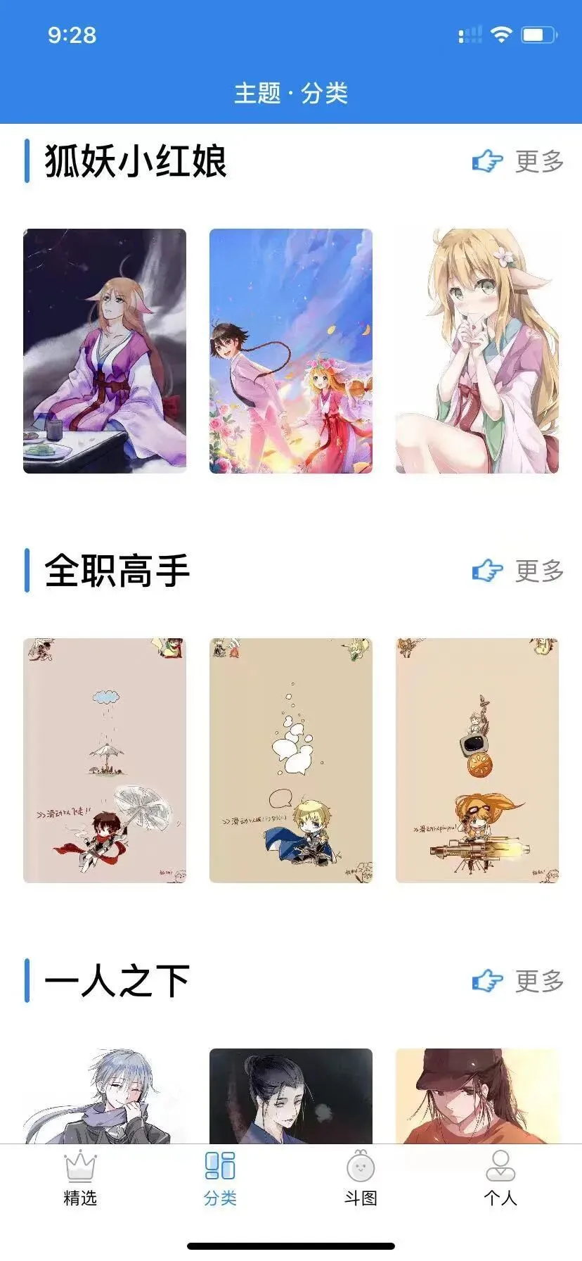 App Store 刚刚又上架了一款宝藏APP 苹果软件管家 每个果粉都应该关注的一个公众号 关注苹果软件管家 你可以获取少有人知的苹果软件和技巧 本文来自公众号苹果软件管家 长按下方卡片即可关注 美的事物总是让人留恋 而且世人总是痴迷于“表面” 所以我们每个人都要尽可能的装扮自己 让自己看起来“光鲜亮丽” 有时候除了装扮自己之外 还会对自己的附属物品花费心思 让它们也成为一些“小心机” 刚好今天管家找到一款 专属IOS的手机美化APP 可以让我们的iPhone也拥有多种可能 「动漫壁纸」 一款免费的专属IOS的壁纸软件 这款软件内部包含了超多好看的动漫壁纸 还有许多有意思的斗图表情包 有了它不光可以装扮我们的iPhone桌面 还可以享受聊天斗图的无穷欢乐 打开软件之后 首先可以看到的就是“每日精选” 软件每天都会精选40+精美壁纸 配上经典动漫语录 生成独一无二的日历壁纸 大家可以每天从中挑选最好看的图片 作为壁纸或者也可以把图片下载下来 用在别的地方慢慢欣赏 这款软件的壁纸分类也非常丰富 包括游戏动漫、动漫场景 可爱卡通、动态壁纸 以及睁眼壁纸这五大类 其中的的动态壁纸 是最有特色的 里面都是一些经典动漫的”名场面 ” 除了上面的那些内容之外 软件还收录了非常多的经典动漫作品壁纸 包括阴阳师、全职高手、一人之下、海贼王 火影忍者、全职猎人等等 这样的分类方式 对动漫迷来说真的是非常友好 喜欢哪部作品 可以直接从作品分类中找出壁纸 看完壁纸再来看看软件附带的 “斗图功能”也是非常不错的 里面都很多有趣的表情包图片 最后无论是壁纸、还是表情包 都可以免费无限制下载 而且所有软件所有分类中包含的资源 下拉都可以无限制刷新 也就是说资源非常非常分丰富 有喜欢这款软件的果粉可以下载了 软件下载 有需要这款应用的果粉们 关注管家的公众号【苹果软件管家】 后台回复【动漫壁纸】即可获取