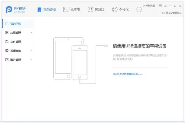 苹果端安装这款音乐软件,首先需要将苹果手机跟电脑连上,这里我选择下面这款软件连接电脑和苹果手机,然后通过这款软件软件将ipa格式的音乐文件安装到苹果手机上,就可以了~