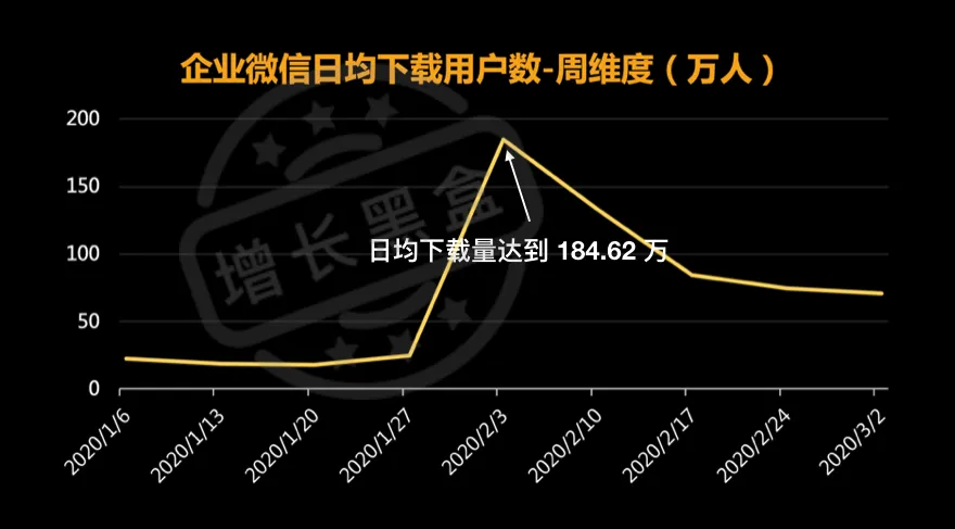 企业微信在 2020 年 2 月 3 号,日均下载量达到 184.62 万;