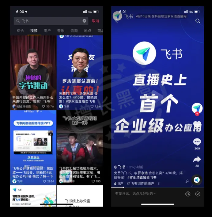最近全网的目光被老罗的首场抖音直播首秀都给吸引住,老罗也在 4 月 1 日抖音直播间当晚卖出 1.3 亿的货。而我在搜集飞书相关推广资料的时候,也发现老罗在 4 月 10 号的晚上,会上演直播史上首个企业级办公应用。