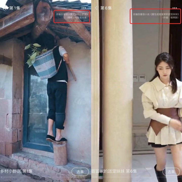 例如瑞网微视,这家短剧平台的版权意识很强的,他们会在每部剧页面加上原著小说名和作者,在一种短剧平台中,是很难得的事情。