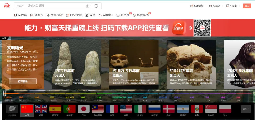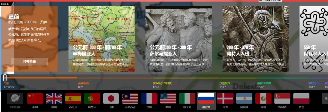 全历史是一个电子版的历史百科全书,印象中有自己的应用,最近发现它们的网页做的也不错。不同于传统历史书上那样按照国家或者事件分类的叙事过程,全历史的网页版主要按照时间轴为线索,分为不同的国家地域,将当前整个世界的历史进程展示出来,更容易理解。(建议用电脑端打开,手机端内容和体验一般)