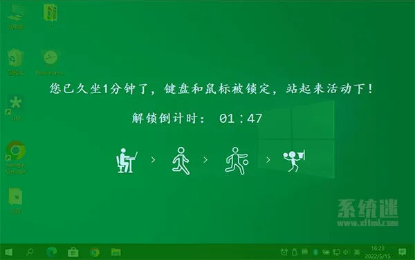 倒计时结束,Sedentary Reminder将显示遮罩层,锁定鼠标和键盘。