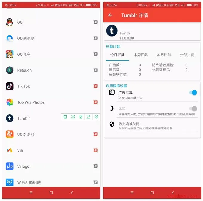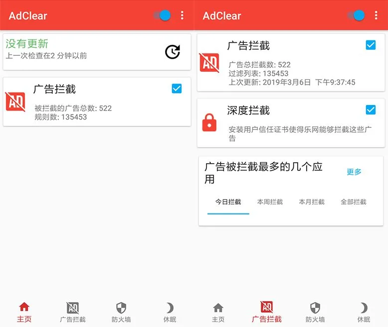 支持独立的APP设置广告过滤,可以查看拦截和APP流量控制等功能。