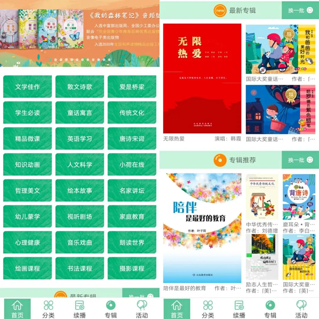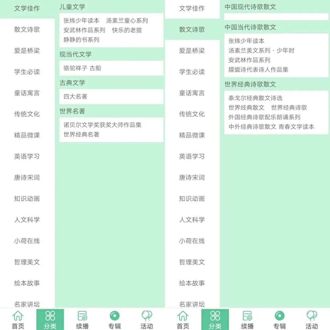 软件下方还有专门的分类,这样可以帮助小伙伴们更方便的找到想要听的书。不过虽然整体看起来不多,但是是有一些专辑的。