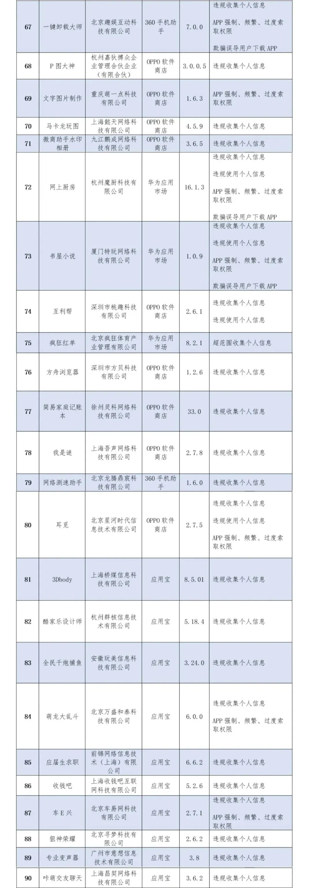 通报显示,上述软件分别涉及超范围收集个人信息、欺骗误导用户下载APP、APP频繁自启动和关联启动等违规行为。