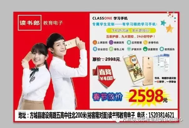 注: 新老顾客凭任意旧手机,旧电子设备都可以到店折价换购读书郎CLASSONE学习手机!