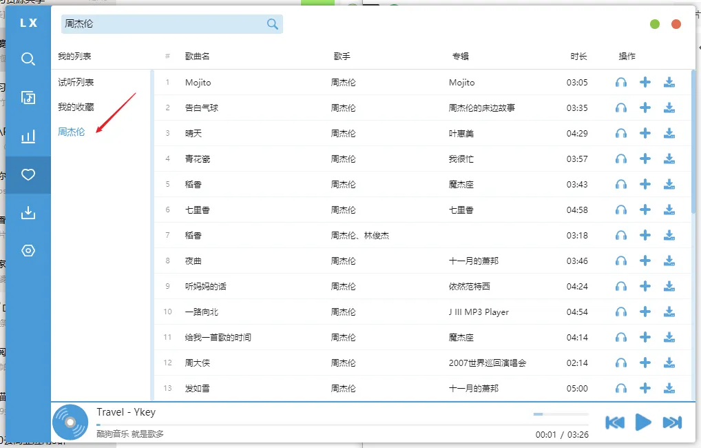 双击只播放一首歌,然后自动跳转到之前的试听列表(这个比较鸡肋)