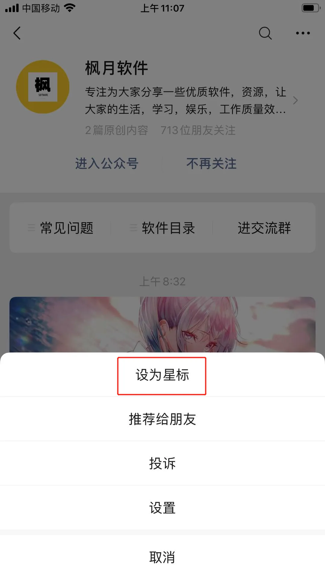 最近微信公众号推送规则的改变,如果你不星标公众号,系统会默认你对该公众号不感兴趣,你就再也看不到每天的推文了。为了不错过每日精彩推荐,建议星标公众号,具体步骤如下: