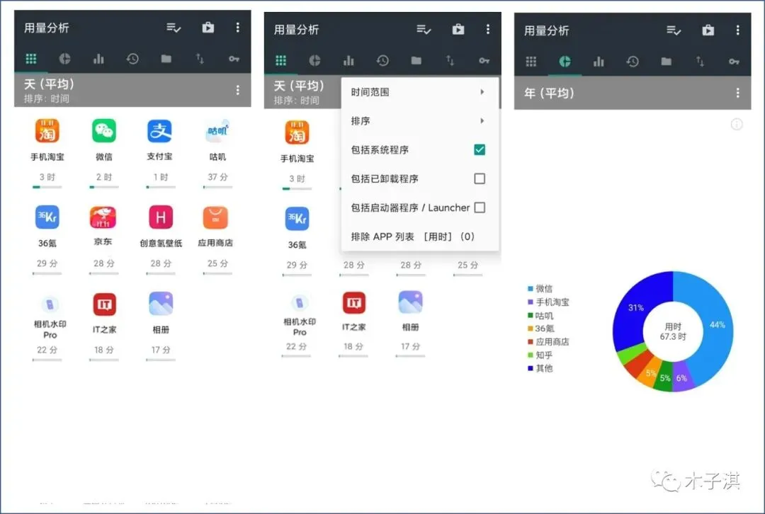 它的功能强大,界面极简,支持多种图表展示,支持时间轴显示,可以帮助你详细分析统计手机 App 使用情况。