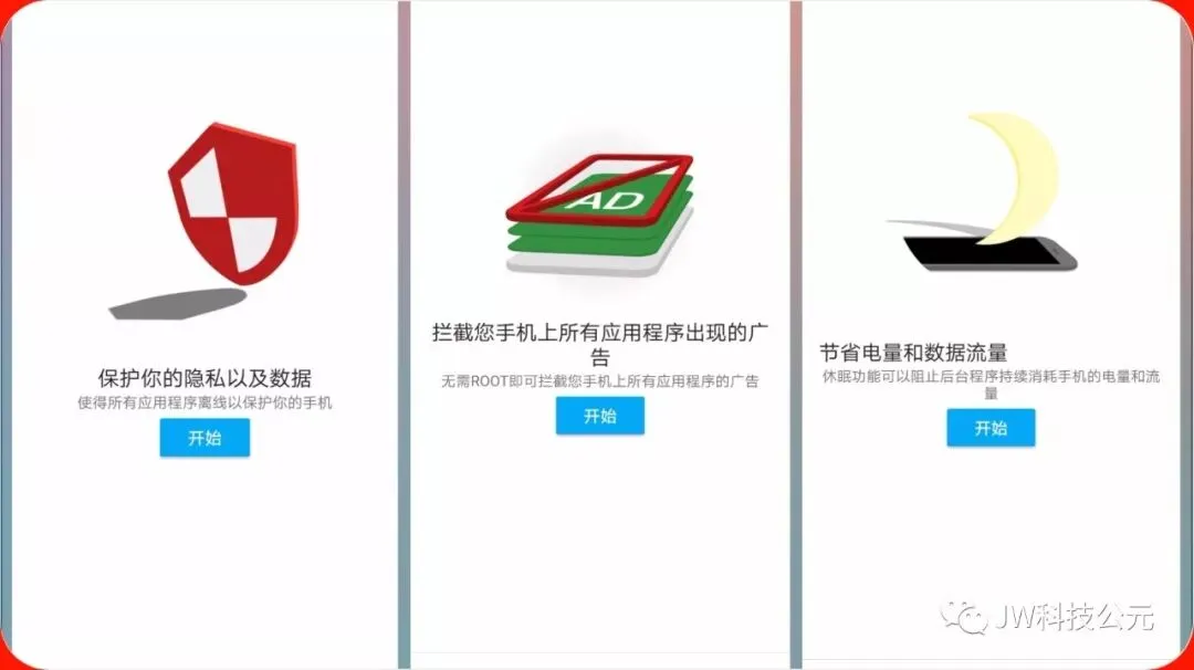 能拦截您手机上所有应用程序出现的广告,无需ROOT即可拦截您手机上所有应用程序的广告。