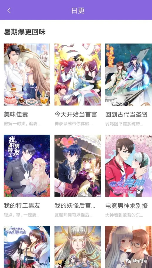 另外一个推荐,把资源分为了:精品、日更、小说等等。特别介绍一下日更,在这个类别里面,把资源进行了归类:暑期爆更回位、男生再看、女生再看、新作初妆,任君几番疼爱。