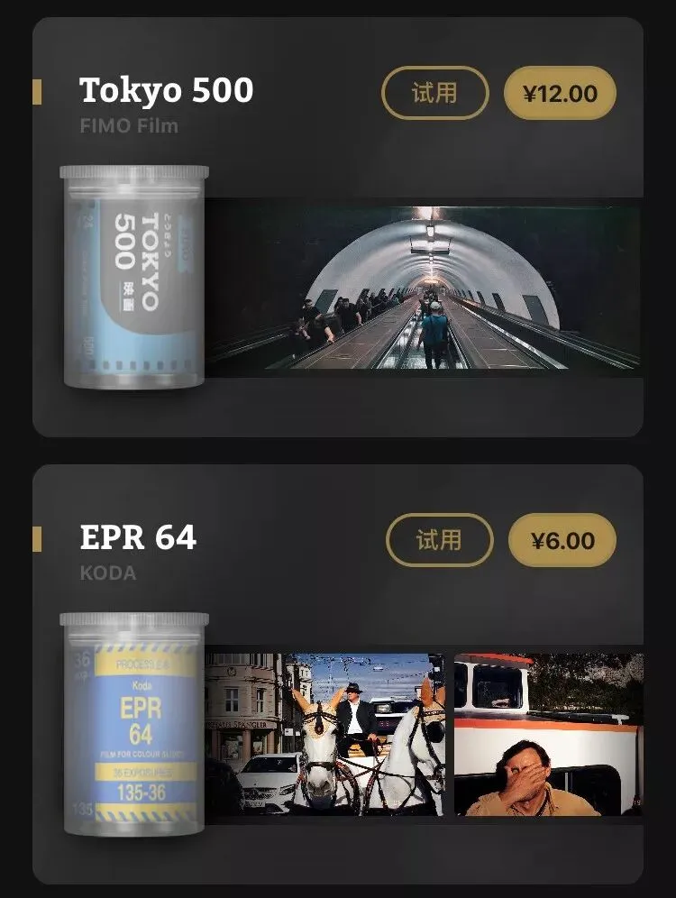 可以选择不同风格胶卷拍摄。