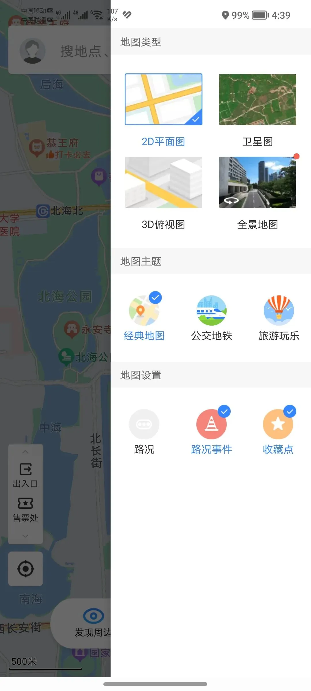 你可以查看路况、切换卫星地图、平面地图、离线地图、电子狗等等。同时,它还提供了查找地点、查询公交、导航路线等功能,与原版完全一致。