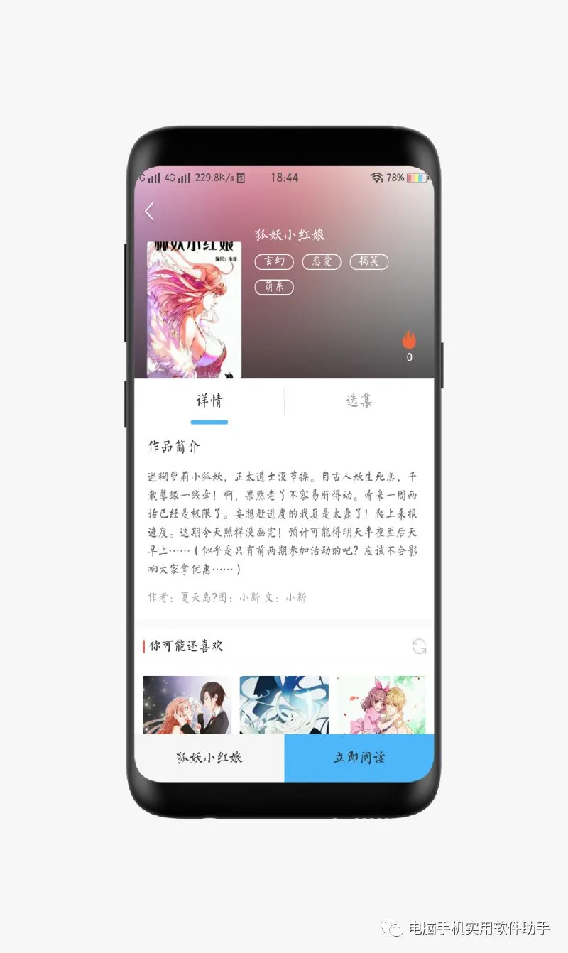 这个上次推过一次了,可以看很火的狐妖小红娘,软件不是自慰版,虽然显示和腾讯动漫的章节不一样,但是,这个里边的章节是和腾讯动漫所有更新同步的。