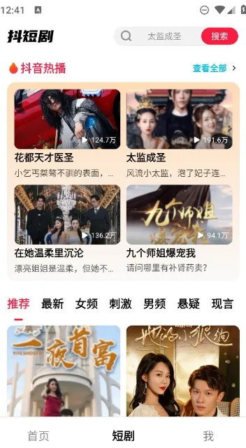 红果短剧拥有海量的短剧资源,涵盖了各种题材和类型,无论是悬疑、喜剧、爱情还是历史,都能在这里找到精彩纷呈的短剧作品。这些短剧内容制作精良,剧情紧凑,每一部都足以吸引观众的眼球。