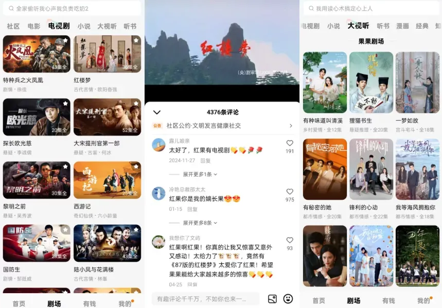 不止短剧——红果APP的破圈路线图 2025年6月,红果MAU突破2.1亿,超越长视频平台优酷,而此时距红果APP正式上线还不到2年。 而据《中国网络视听发展研究报告(2025)》显示,截至2024年底,微短剧人均单日使用时长101分钟。红果虽未公布过具体数据,但有多家媒体报道称其2024年11月人均单日使用时长为102.5分钟。 红果2年用户狂飙以及用户黏性是怎样练成的?我们尝试从用户体验的角度探究一下。(关联阅读:《数据透视红果短剧两年狂飙及2025内容八大风向》) 首先,“免费”留住用户。 “消费降级”是2018年底由国家语言资源监测与研究中心等发布的十个新词语之一,但真正发展成全民心态则滞后了几年。这期间,更爽剧情表达、更低投资门槛的“微短剧”兴起,观众以及从业者都迅速找到了影视剧的替代品。 微短剧甚至拥有了“日进斗金”的短暂快乐时光,2023年,在小程序短剧遍地开花之际,长视频平台们则遭遇着每有价格风吹草动便喜提热搜的待遇,大屏也因为“套娃收费”焦头烂额,而微短剧几分钟一集的剧情要一元解锁,在对价格敏感的用户侧注定难以长久,而占比高达90%的投流费用也让出品方的ROI越来越差。 红果短剧的免费看全集自然有着极大吸引力,何况还背靠着抖音的流量、头条系的算法,就算初期体验上存在不足,用户也因为免费相对更宽容。后来,红果也推出了付费会员,而且价格与长视频会员差不多(8元/周,30元/月,78元/季,260元/年),但依然提供所有作品的免费观看,最大程度防止了用户流失。 其次,“体验”黏住用户。 红果短剧免费的同时还“大碗”,据报道已上架短剧约15000部,同时保持每个月1000部左右的上新能力。 字节跳动2025年5月29日成立“短剧版权中心”,将原来分散在抖音短剧和红果短剧两个团队的所有商务、版权、内容审核等职能整合,向红果短剧实际负责人张超汇报,张超同时也是今日头条、番茄小说负责人,该中心对优质创作者/版权方推出“红果首发”协议,番茄小说版权库支持以及红果首发等等政策,都让其内容更值得期待。 在免费、内容量、更新率等多重加持之下,红果被很多用户爱称为“嫡长果”。支持单列信息流推荐,还支持九宫格找剧,短剧标签打的非常细,各类排行榜也很足。其播放的清晰度以及流畅度在笔者测试的多款短剧APP、小程序中也是佼佼者。提供0.75~3.0倍速,且选定倍速后默认都是这个倍速,相对于不少平台一集一集选倍速,这个细节功能让体验舒适很多。三集或者五集一次广告,时长8秒或更短,频率可以接受。 【活动推荐】探究短视频如何反哺大屏内容生态 更具黏性的是社区化氛围以及福利机制: 社区除了用户参与也吸引演员入驻,可以发动态,且不管是否入驻,演员都有作品合集,版权机构也有作品合集,同时,普通用户也可以发动态,红果还测试了单独的社区频道。另外最有氛围感的是短剧的评论区,爆剧的单集评论能有几万,还有不少演员空降评论区,对黏住用户十分有利。 而看短剧的福利机制是赚金币,除了常规的签到、看剧赚金币,还有吃饭补贴、睡觉补贴、浏览商品等等许多方式,而且福利频道现在直接叫“有钱”,是底栏四大栏目之一,笔者测试了一下,提现很顺畅。 笔者本人作为使用红果超过一年的用户,整体体验就是免费不低质,没有明显短板,甚至细节方面十分优秀。 最后,红果不止短剧。 短剧是红果的最强标签,但红果APP却不止短剧,还可以看电影、电视剧、小说、漫画、听书,甚至还有细分的大视听、经典、知识等栏目。并且,一部爆款短剧往往同步上线同名有声书、漫画、小说等;在红果里可一键切换到看小说模式、听书模式甚至漫画模式,实现同IP多体裁无缝衔接。 可以看视频的有首页(单列信息流推荐短剧)、“剧场”之下的找剧(竖屏短剧为主)、电影、电视剧、大视听(横屏短剧为主),其中大视听下设精品新剧抢先看和果果剧场两个版块。果果剧场是红果短剧与芒果TV共同打造的双平台精品短剧联盟专区,可以看到《念念无明》《狸猫书生》等芒果热门短剧。 影视观看红果可以看到经典版的四大名著电视剧,收藏点赞评论量还很不错,例如87版《红楼梦》的收藏量有39.8万,第一集评论超过4500,点赞超过6万,互动体验感颇为不错。还有很多虽然不那么新,但是许多人回忆的电影电视剧,例如《霸王别姬》《僵尸先生》《上错花轿嫁对郎》等等,其中老版《上错花轿嫁对郎》有46.5万收藏,首集评论超过5600,许多评论表示了惊喜。而且长剧也是几集插一个几秒的广告,性价比不要太高。 跟书有关的也都在“剧场”之下,目前有小说、听书、漫画、经典、知识五个栏目,而且除听书外的其它四个栏目的书也都可以听书,包括漫画可以关联的原小说听书。并且不止与短剧关联最多的网文,还有很多中外经典作品,例如经典栏目可以看或者听《狂人日记》《骆驼祥子》《聊斋志异》等等作品。 红果APP努力打破了小说与短剧,短剧与长剧,网文与经典,看书与听书等种种圈子,让他们互相关联、互为补充,只要用户来,总有一款黏住你。这样多元的、破圈的体验集中于一个APP,或者可以成为其用户黏性的最好注脚。而在MAU增速放缓之后,红果更加需要精耕细作,黏住用户。请随流媒体网一起关注,也欢迎关注10月底以“视听破圈 智联无界”为主题的「天津论道暨第30届智能视听与科技创新产业论坛」,共谋