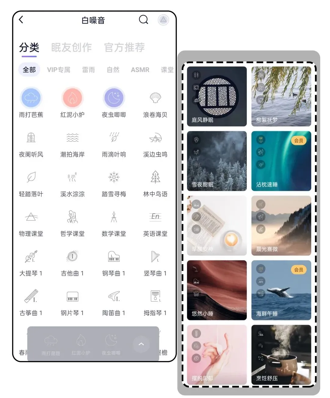 直到被姐妹安利了这款睡眠APP,果然入睡轻松不少,打开喜欢的白噪音(可选择的白噪音超级多,而且两三种声音可以叠加),闭上眼睛,听着听着就缓缓入睡了☺️,美妙呀。