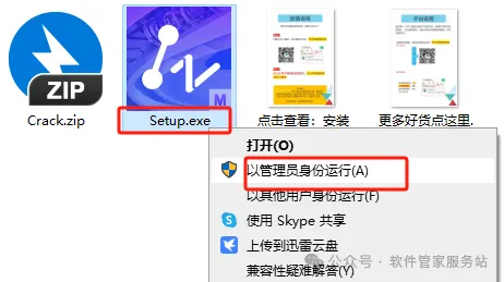 第三步:打开解压后的文件夹,找到setup文件,右击以管理员身份运行。