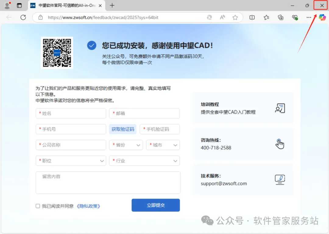 第八步:在弹出的注册界面,右上角关闭即可。