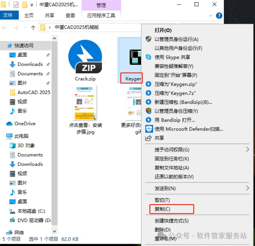 第十步:复制解压后的激活工具到软件安装目录。