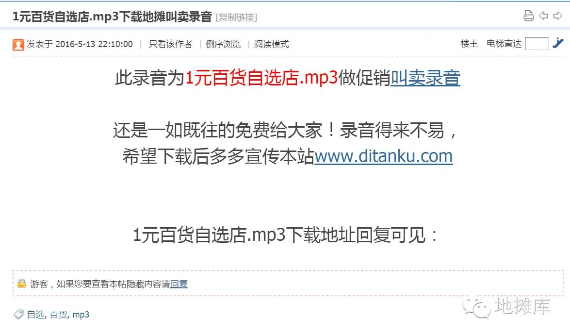 内容下载页面: 需要登录,回复内容 即可看到MP3下载的连接。下载下来就可以使用了。