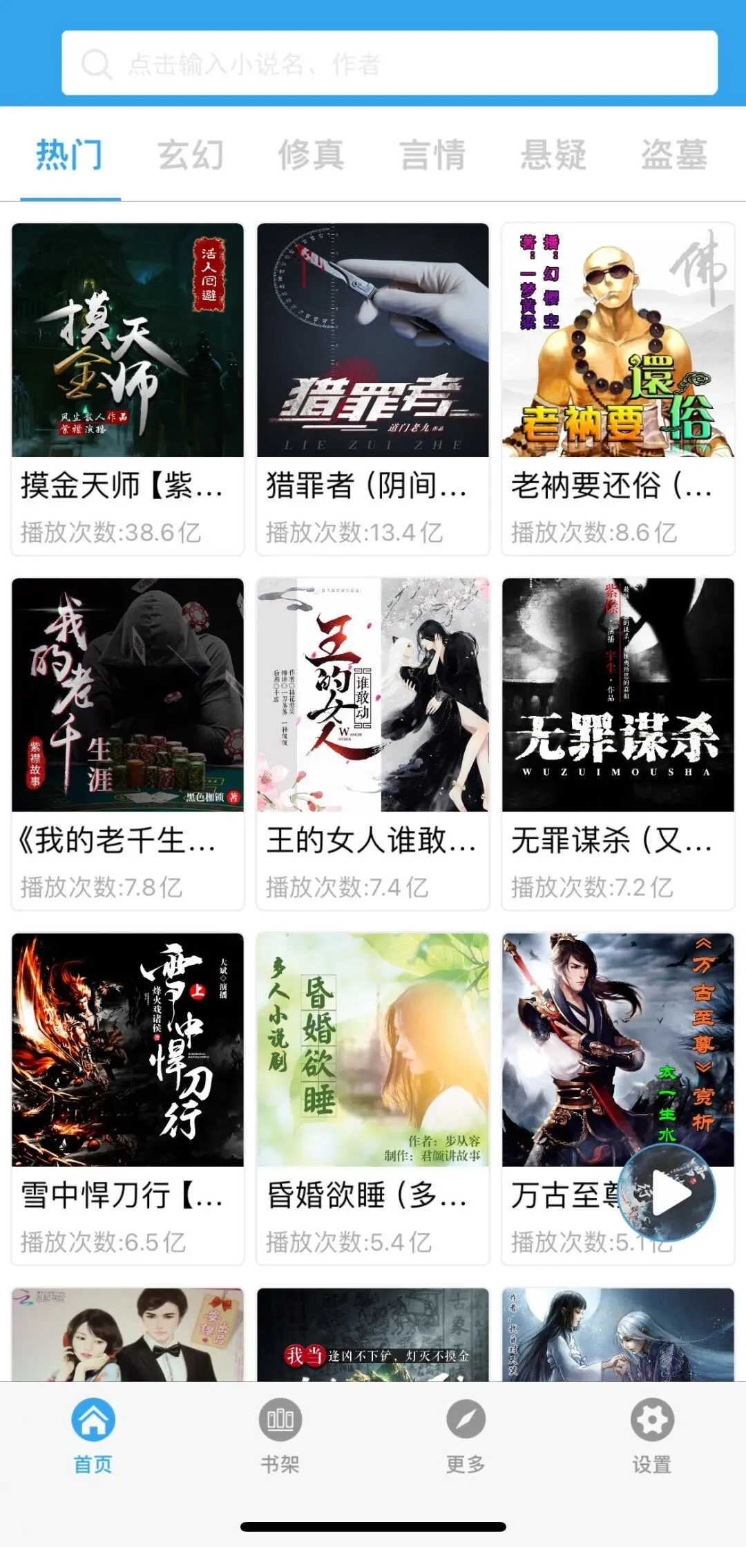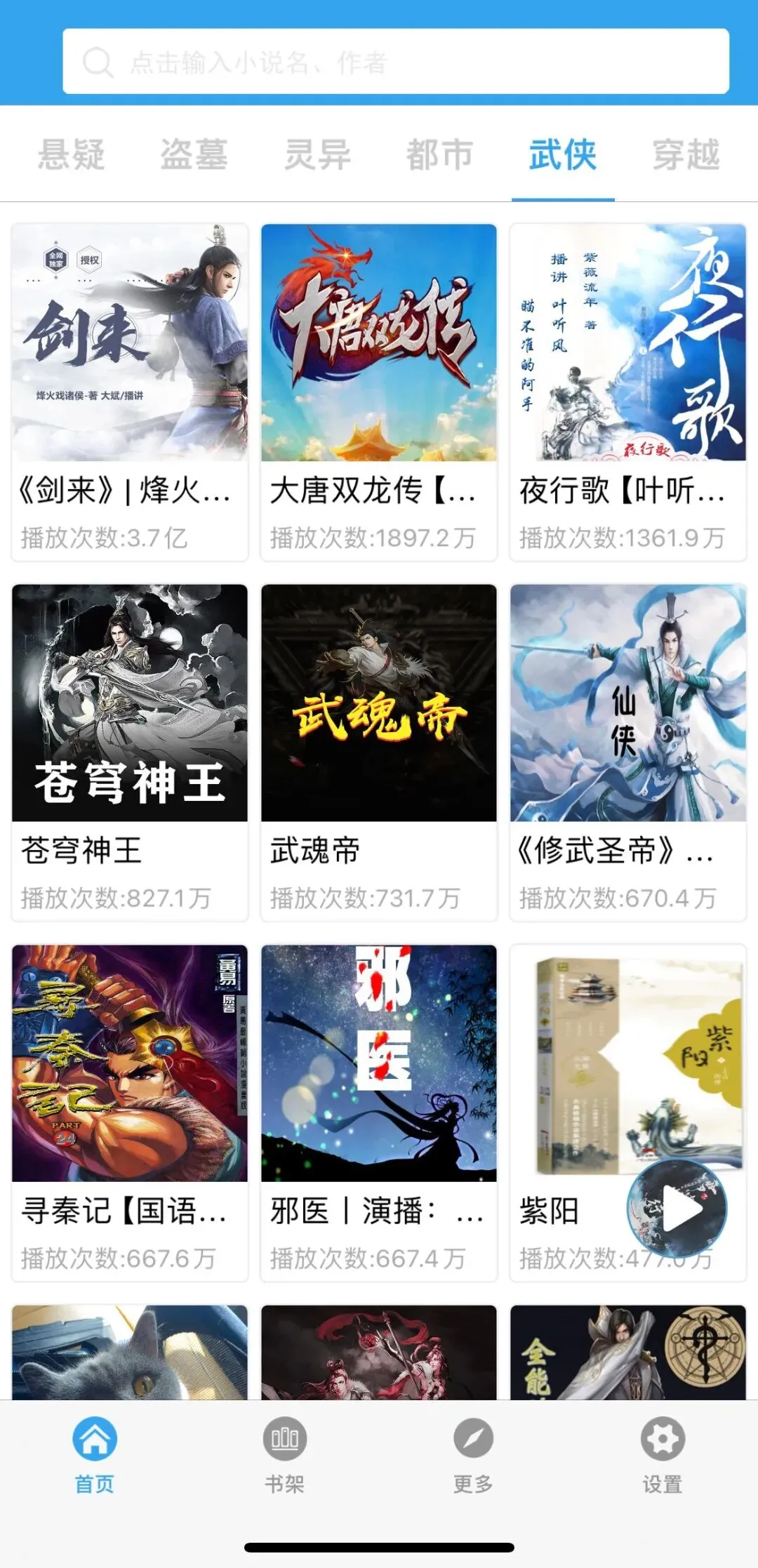 有声小说分类方面像玄幻修真、言情悬疑、都市武侠等一共有10个大家常听分类,每个分类里面的有声小说都是直接展示出来,想听哪个直接点就好。遇到想听的直接给添加到书架就好了。