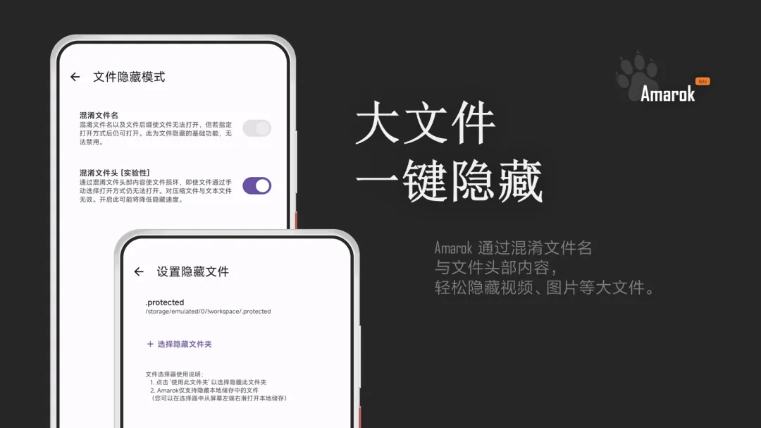 如果你手机有些隐私文件 / 应用不想被被人知道,那么可以通过「Amarok」这款轻量级隐私保护小工具,一键隐藏你的隐私文件和应用。