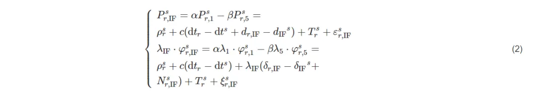 对于L1/E1、L5/E5a双频PPP,采用双频无电离层组合模型,其观测方程为: