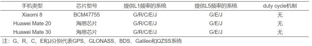 3款手机均能跟踪全GNSS星座,并且能在GPS、Galileo、QZSS星座上提供L1/L5频率的双频观测值。此外,3款手机的内置系统已经取消了duty cycle机制,允许输出连续跟踪的相位观测值。