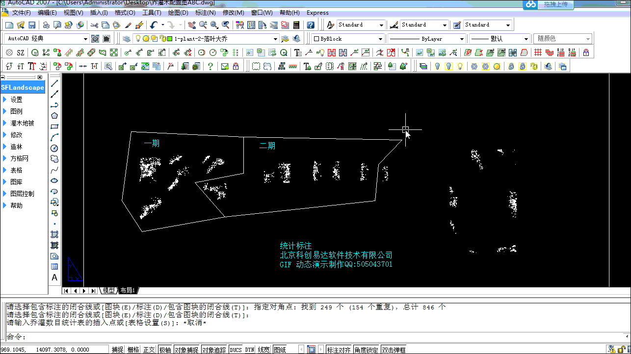 18. 框选灌木地被标注:一键将图纸中所有灌木地被区域面积标注出来,右键选择植物名称,提高绘图速率。