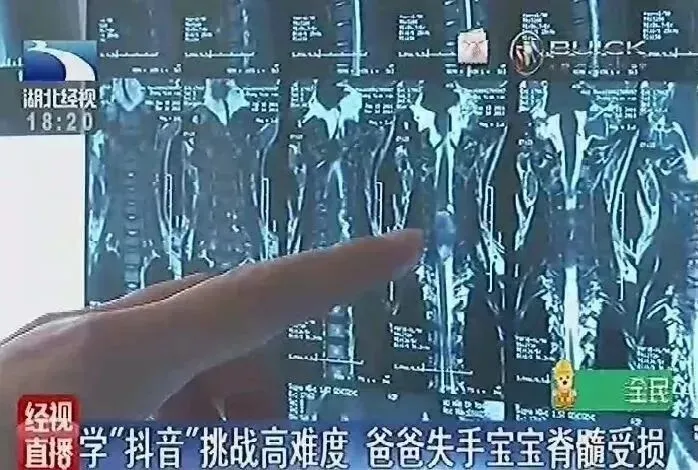 爸爸学抖音,挑战高难度动作,却失手让宝宝脊髓受伤!