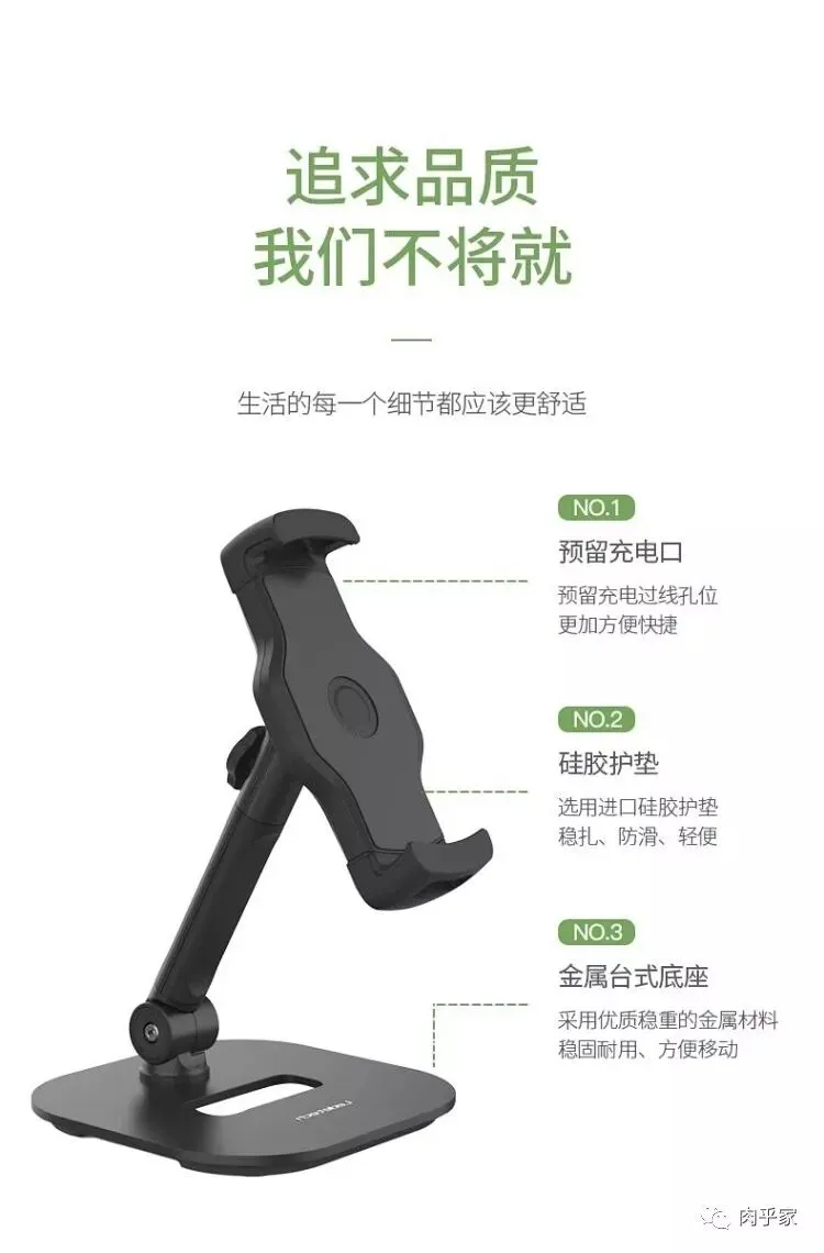肉乎家本次团购的支架,是多方对比挑选,最终确定了这款兼顾颜值+稳固+功能+安全性的产品。