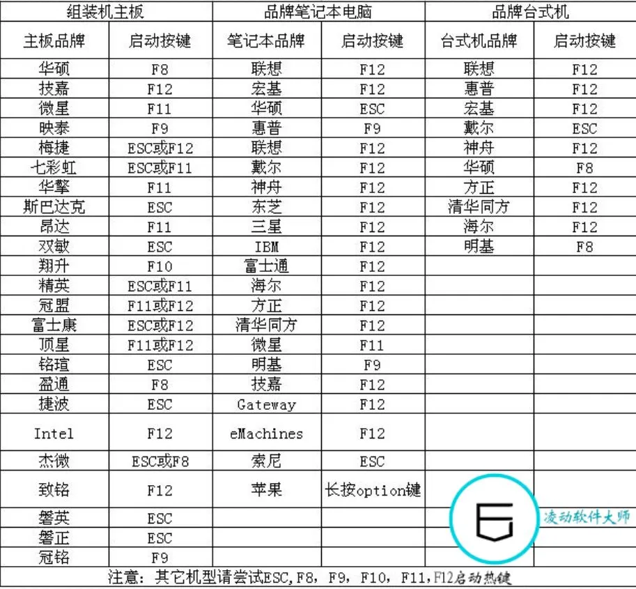 1、下载win7原版系统文件储存于装机版U盘或自己电脑里,然后查看自己的电脑启动项快捷键是什么 。U盘启动快捷热键对比图。请比对自己的型号进行查看