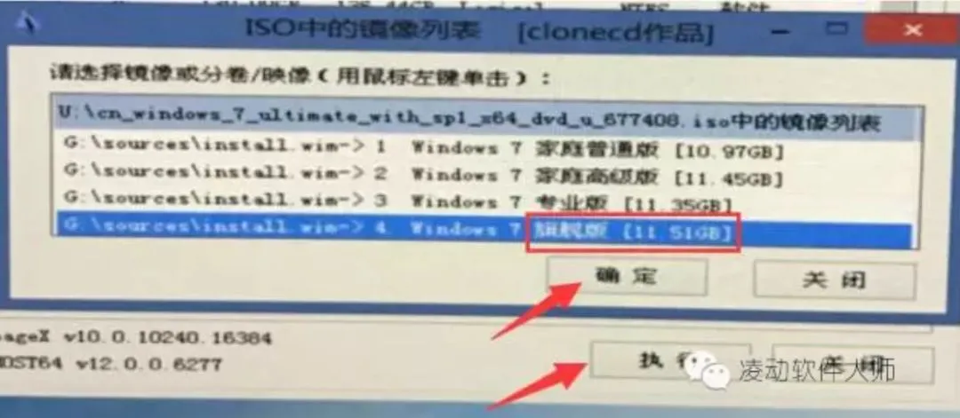 6、选择U盘或电脑里面下载好的系统文件,建议选择旗舰版,然后点击【执行】