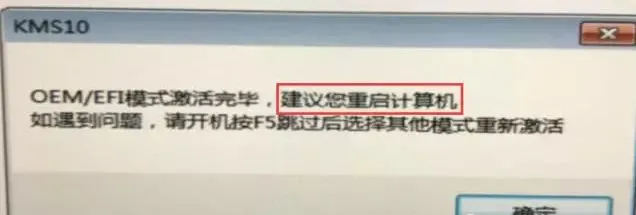 7.勾选重启后,点击【确定】
