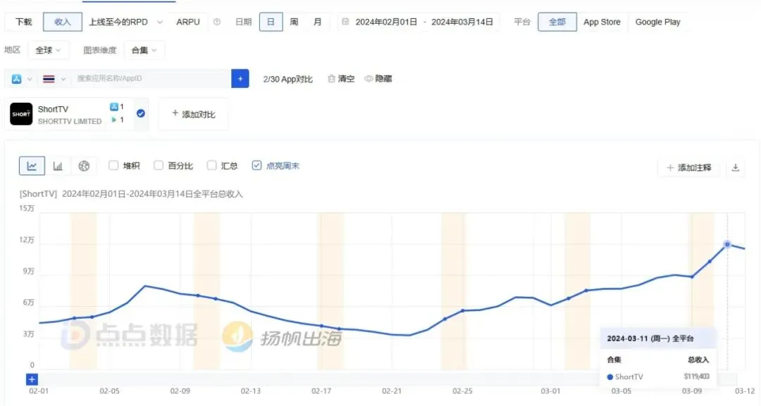 从收入上看,3月以来《ShortTV》开启上涨趋势,而在3月9日-11日更是单日冲上11.94万美元新高。